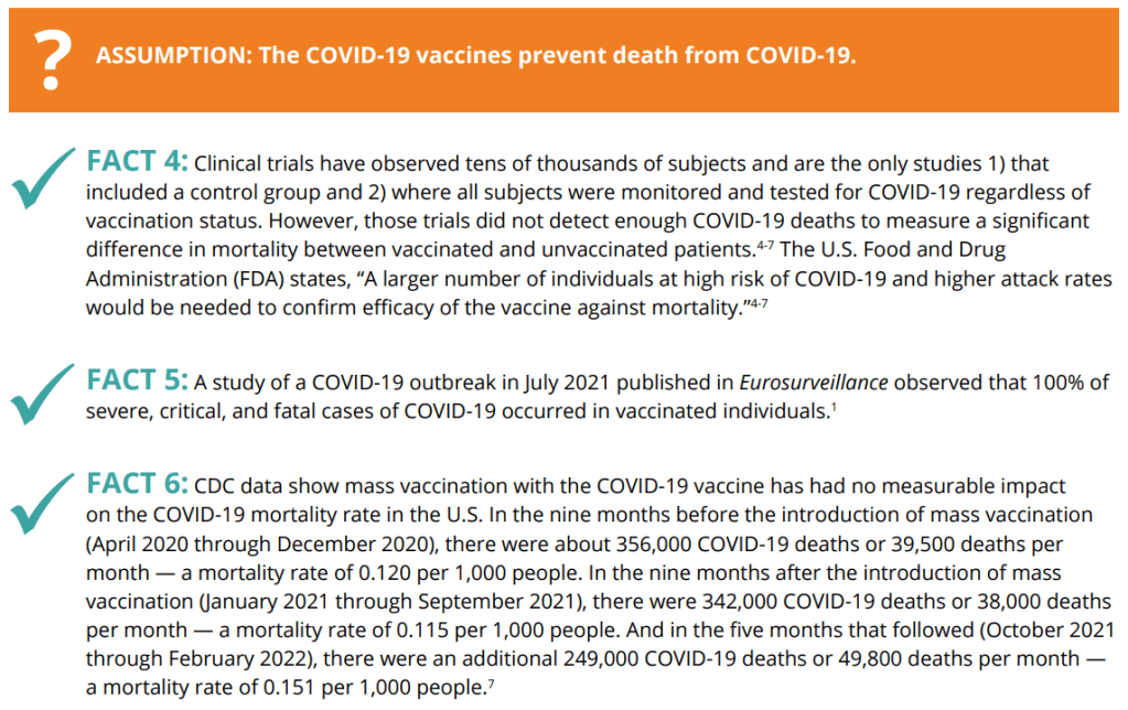 The problem with this narrative is they right off the bat, try to deceive the reader by omitting facts they don’t like. I will, in this 9 part series, debunk all their famous vaccine summary paperwork. Theoretically they support informed consent prior to vaccination, but this by definition cannot be achieved by leaving out so many holes that the information provided to the audience is like a slice of moldy Swiss cheese. This debunk will focus on their description of the COVID and influenza vaccines. To avoid accusations that I do not quote accurately, all quotes from the PIC website will be presented in the form of screenshots so nobody can tell me I took their quotes out of context. Let’s get right into it.